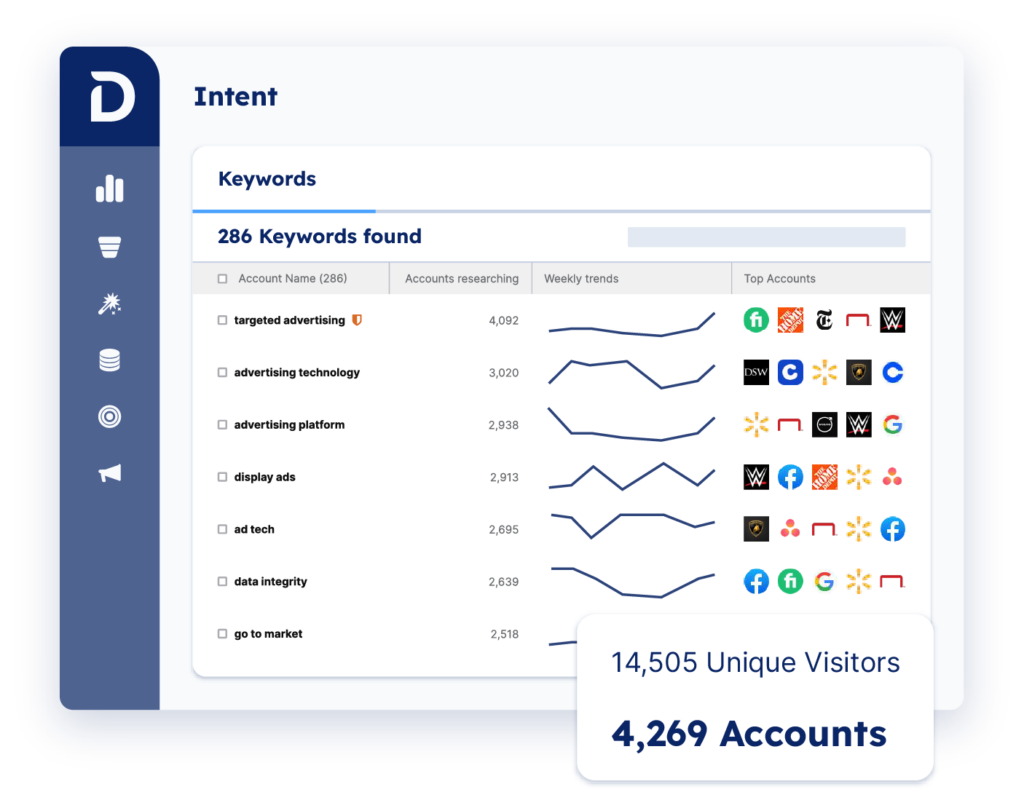 Demandbase allows users to create highly specific audience segments based on a combination of intent data, firmographics, technographics, and account engagement history.
