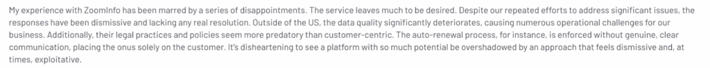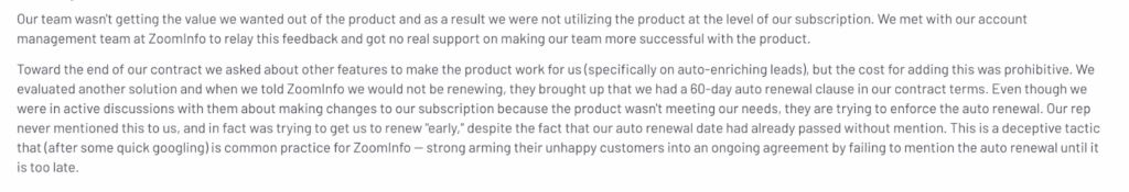 Several users have also complained about ZoomInfo’s shady (and weirdly inappropriate business) practices — particularly its two-year compulsory contract.