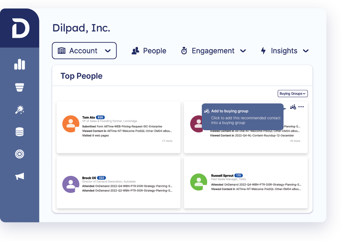 Engaging the wrong decision-makers can significantly slow down a deal cycle. DB1S’s Buying Groups for Sales feature changes that by automatically identifying key decision-makers and assigning appropriate buying roles. This feature enables sellers to: