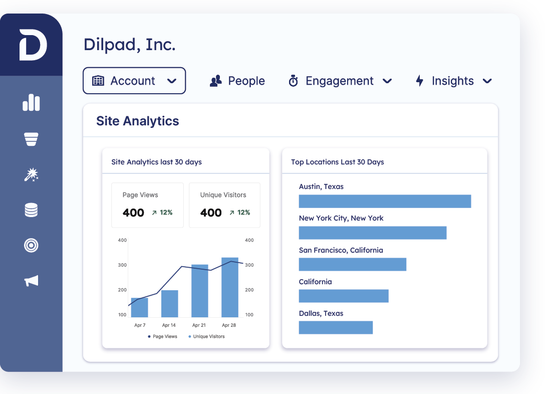 Understanding account behavior on your website is crucial for personalizing outreach, but it’s often difficult to track which pages a prospect is visiting. With Site Visit Intelligence, DB1S tracks visitor activity, providing critical insights such as: