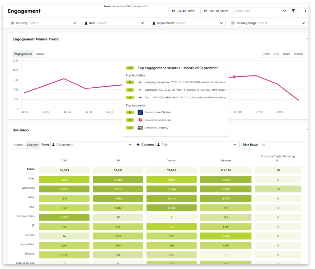 • Analyze account engagement, score accounts, and measure ABM impact using real revenue data.