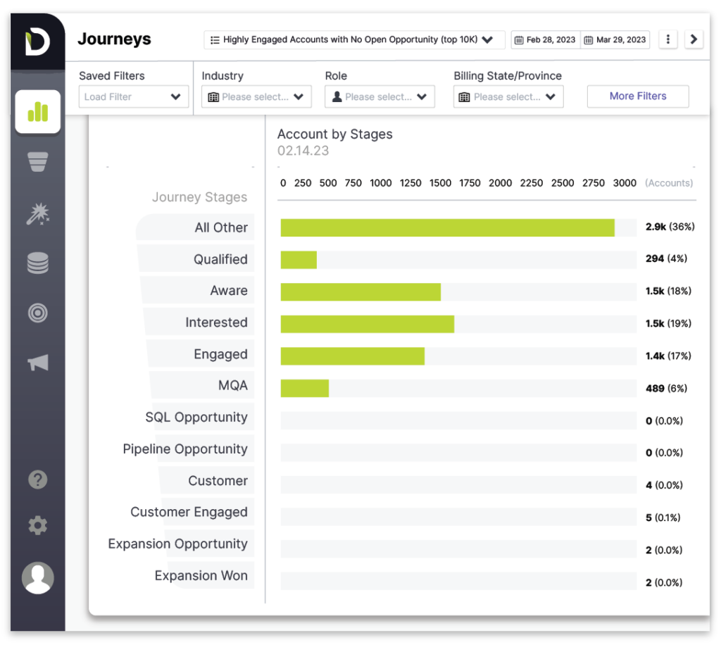 • Visualize where accounts are in the buyer’s journey.