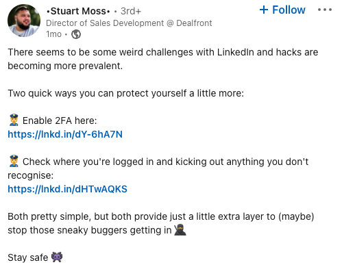 Stuart consistently shares content on LinkedIn about prospecting, cold outreach, leadership, and skillset development for SDRs.