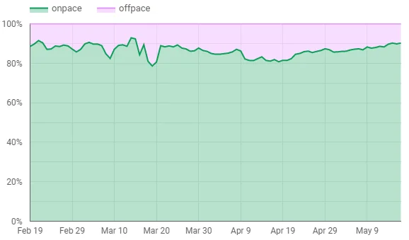 Note: This graph shows the % of campaigns that are on-pace with delivering the full amount of impressions promised over the flight dates of ad campaigns. WFH is not negatively affecting our advertising product. In fact, quite the opposite as the next graph shows.