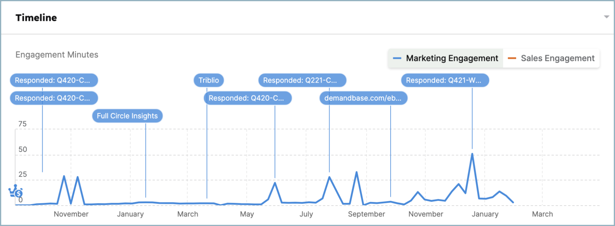 Example: If an account is researching “employee engagement software” across third-party platforms and has also downloaded your “2024 Buyer’s Guide,” you can assume they’re mid-to-late funnel.