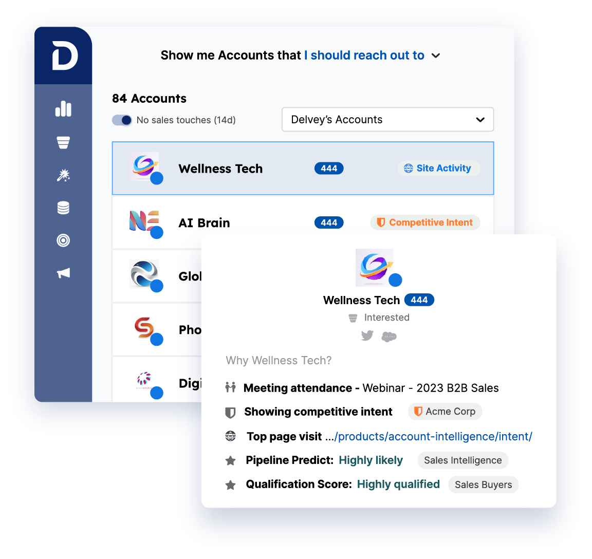 Get a 360° view of every account, at every stage, and know exactly when, where, and how to strike. Know the right accounts, the right timing, and the right message to turn interest into pipeline, pipeline into revenue, and clients into loyal fans.
