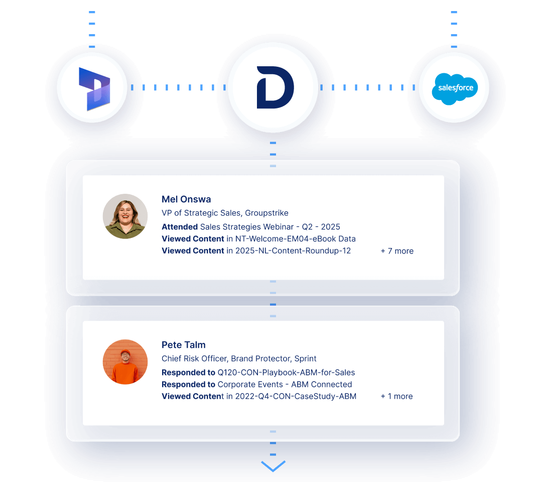 When prospects engage, automatically update contact records, notify reps, and trigger workflows across your sales tools.