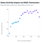 MQAs receiving fewer than 10 sales touches show the lowest conversion rates. Performance improves steadily as engagement deepens.