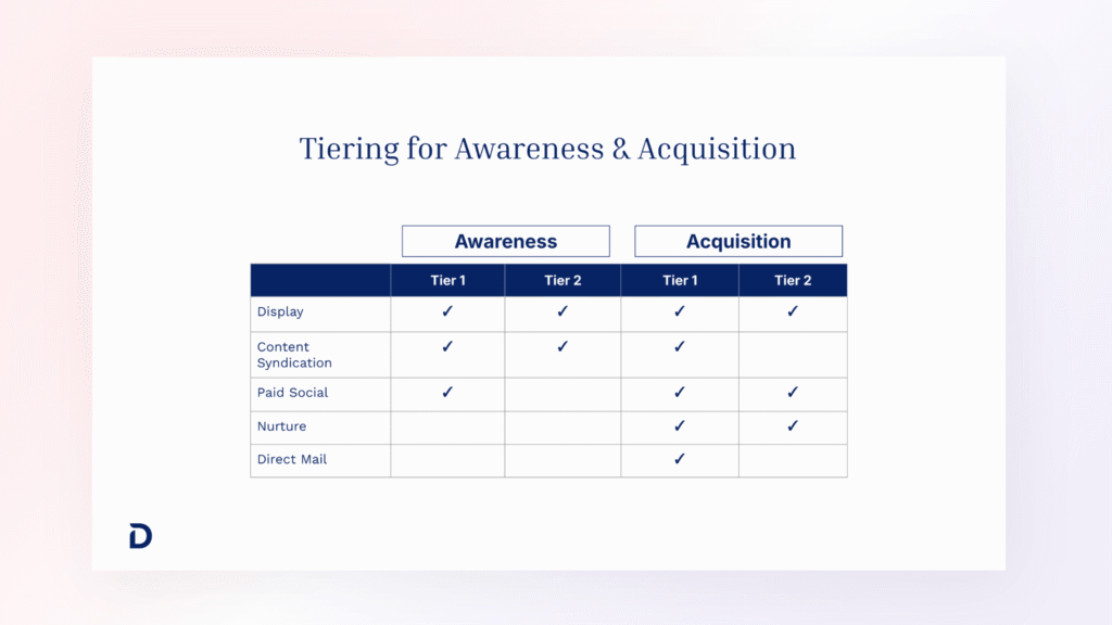 1. Adopt tiering strategies across campaign types, from Awareness to Pipeline Acceleration.