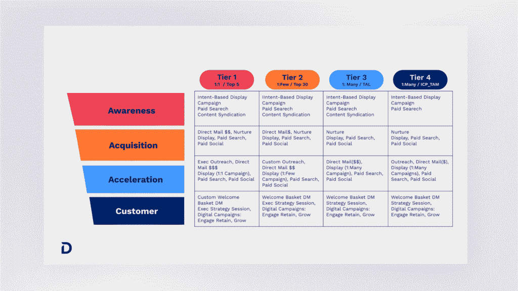 Pro Tip: You don’t need perfect sales-marketing alignment or a formal tiering system to get started. One simple way to pilot a tiered approach is to work with a seller you trust. Ask them to group their accounts into three buckets: top priority, mid-tier, and lower priority. Then apply your digital marketing strategy accordingly. This kind of scrappy, collaborative test can drive impact quickly and help build the case for broader adoption.