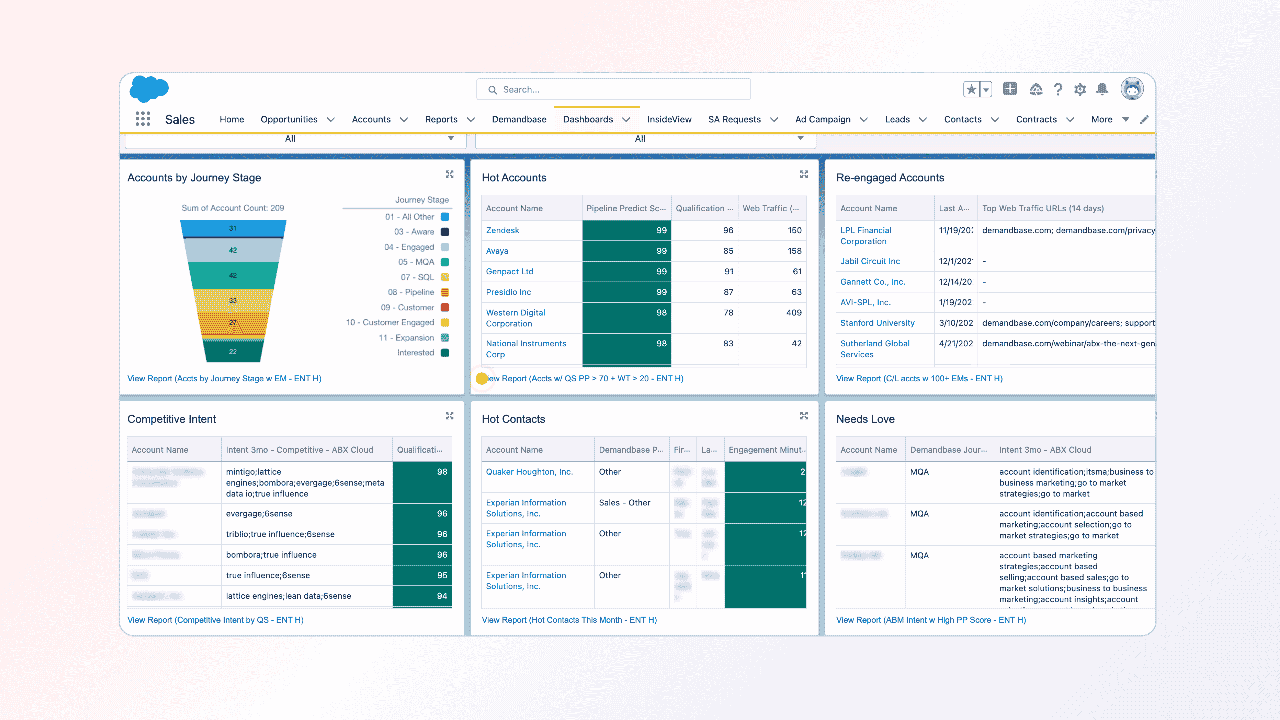 By combining structured dashboard reports with actionable workflows, your sales and marketing teams can confidently pursue high-priority accounts and improve pipeline velocity.