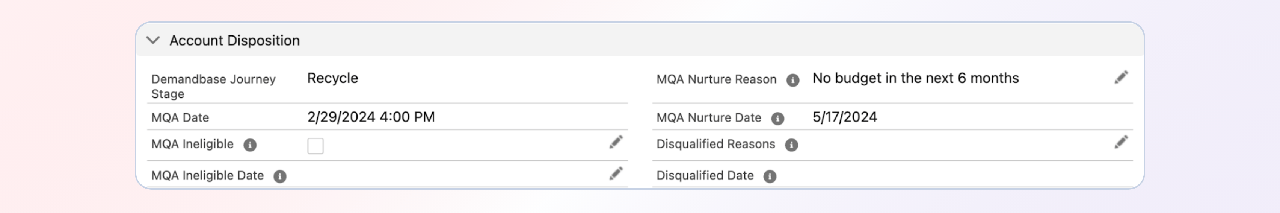 • MQAs (Marketing Qualified Accounts): Track accounts where multiple individuals show high, recent engagement.