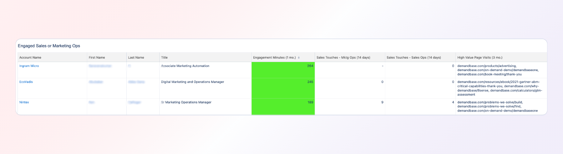 - Demandbase Buyer Engagement Reports: For persona insights, historical activity, and engagement tracking.