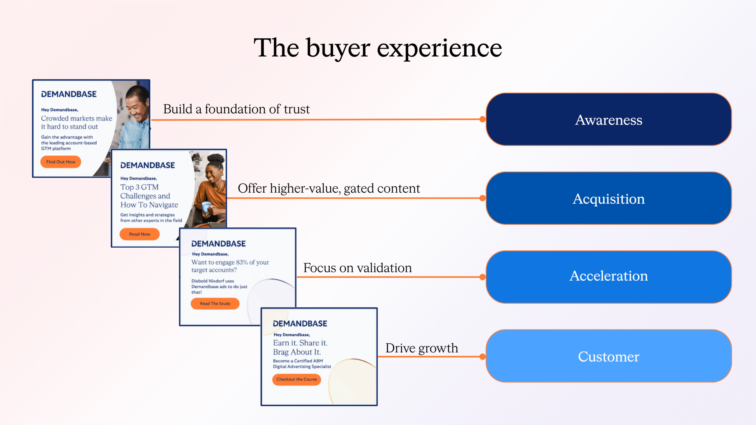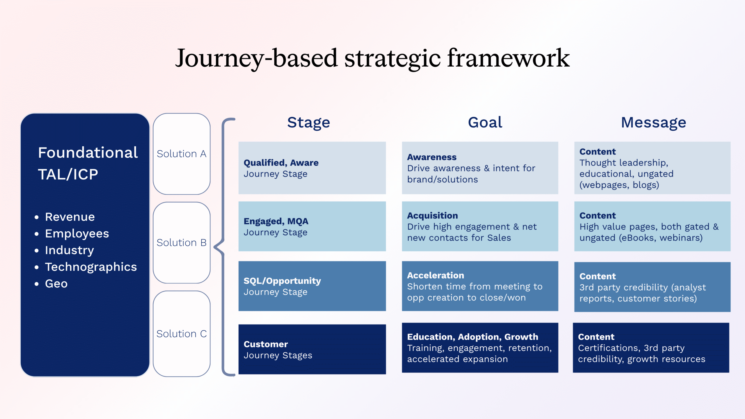 • Use a single advertising campaign to target accounts across the entire funnel (Awareness, Acquisition, Acceleration, Customer) using the JourneyIQ framework.