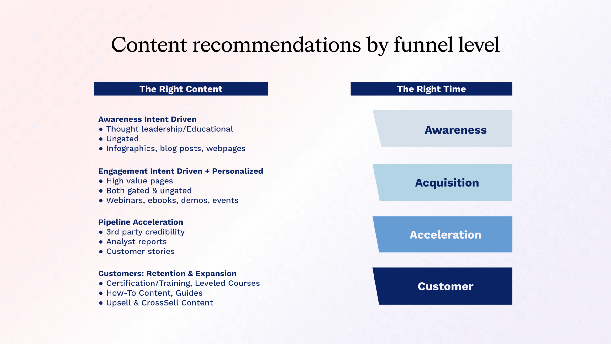 Awareness (TOFU) High intent, low onsite engagement Establish trust, build awareness Ungated thought leadership, educational content, infographics