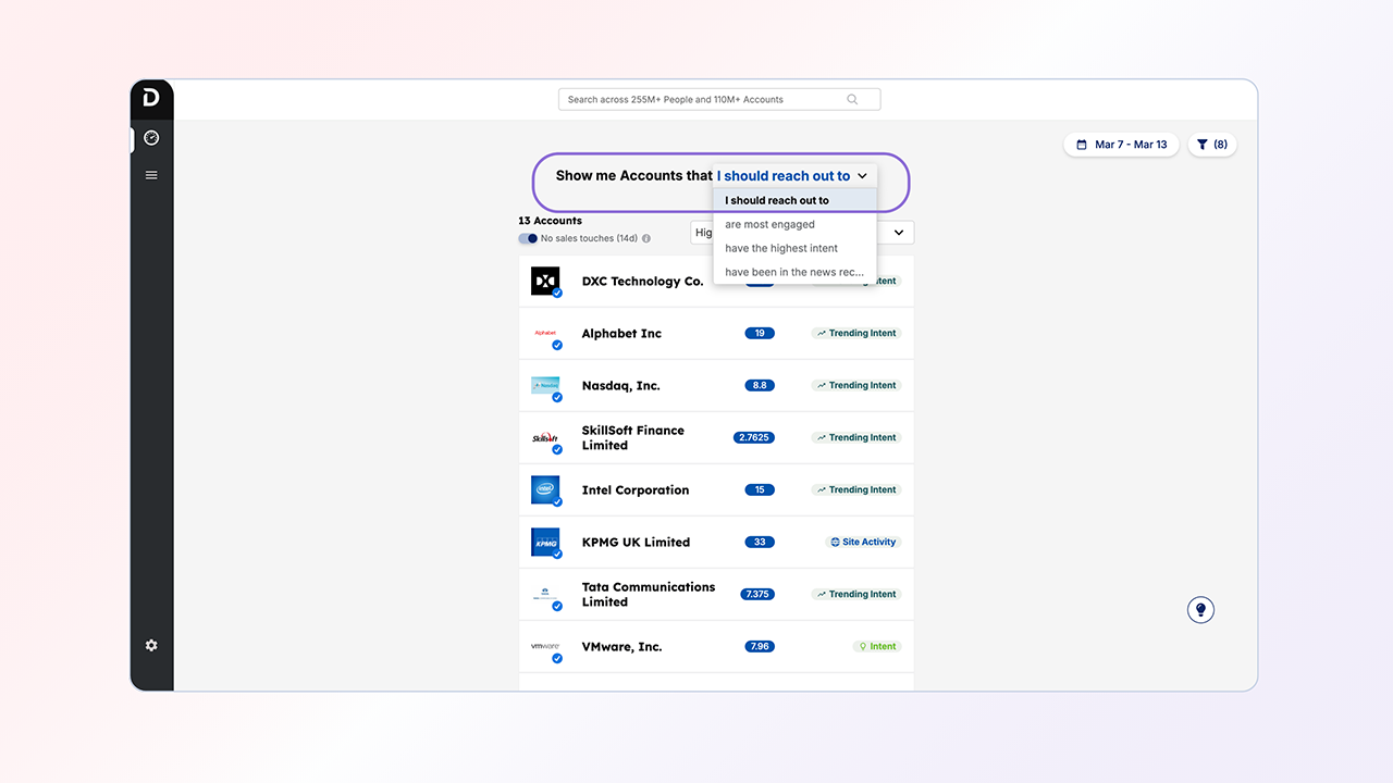 - Understand why accounts are surfacing on your dashboard to prioritize what matters most.