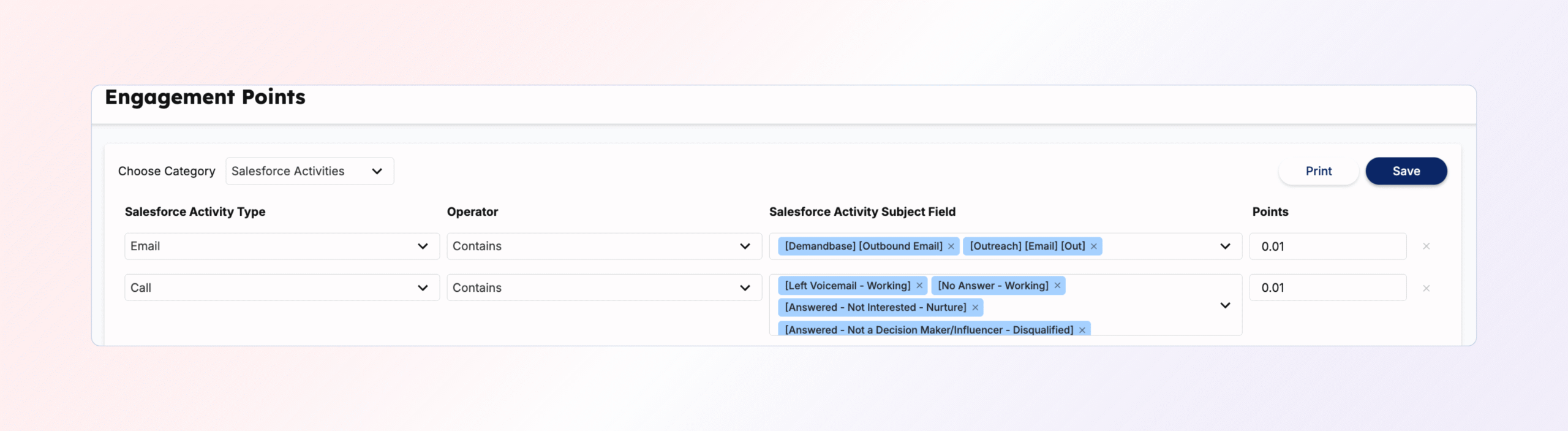 Assign Engagement Points to Sales Activities