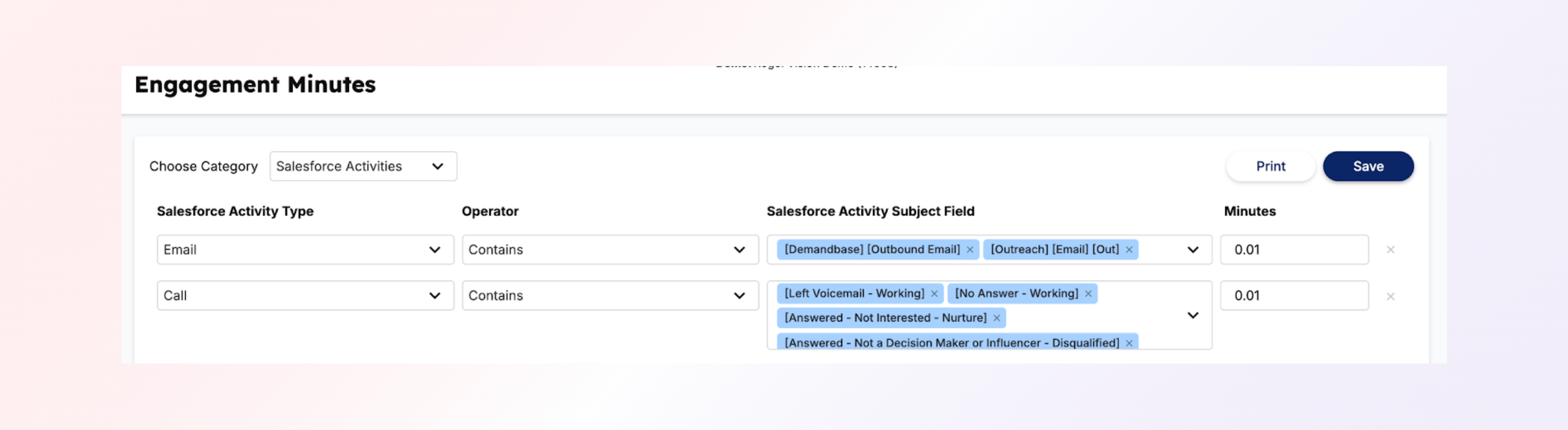 Assign Engagement Minutes to Sales Activities