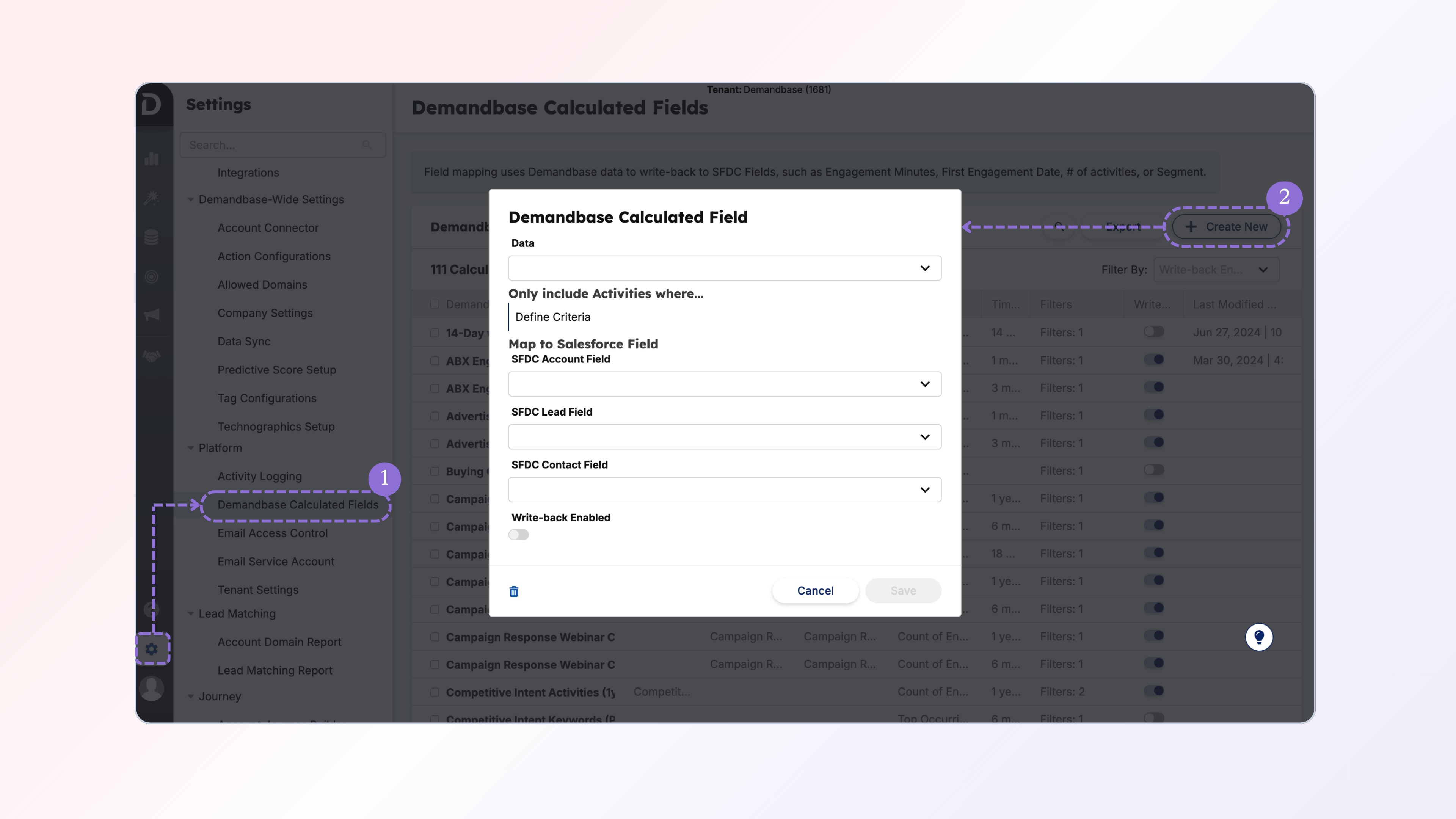 First, you need to make sure that you have your CRM integrated to DemandbaseOne Marketing. You can also have your Marketing Automation Platform integrated.