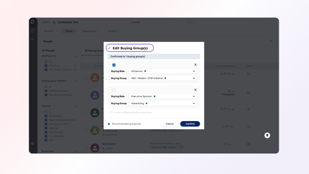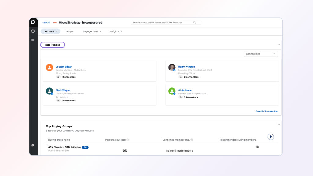 This playbook offers a step-by-step approach to understanding and engaging with your buying groups through DB1S. This will equip you to answer critical account questions, including: