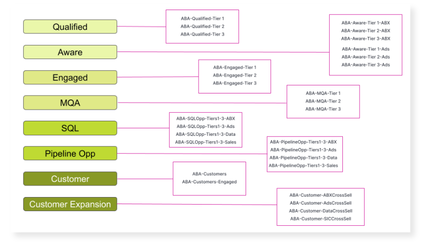 This one is low-lift with high impact and pairs well with making the case for additional campaign investments. And just as menus are broken up by course, top-performing organizations are tiering and segmenting accounts based on desired business outcomes.